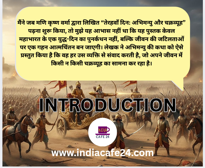 मैंने जब मणि कृष्ण वर्मा द्वारा लिखित “तेरहवाँ दिन: अभिमन्यु और चक्रव्यूह” पढ़ना शुरू किया, तो मुझे यह आभास नहीं था कि यह पुस्तक केवल महाभारत के एक युद्ध-दिन का पुनर्कथन नहीं, बल्कि जीवन की जटिलताओं पर एक गहन आत्मचिंतन बन जाएगी।
