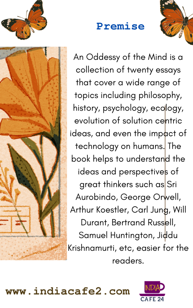 An Oddessy of the Mind is a collection of twenty essays that cover a wide range of topics including philosophy, history, psychology, ecology, evolution of solution centric ideas, and even the impact of technology on humans. The book helps to understand the ideas and perspectives of great thinkers such as Sri Aurobindo, George Orwell, Arthur Koestler, Carl Jung, Will Durant, Bertrand Russell, Samuel Huntington, Jiddu Krishnamurti, etc, easier for the readers. The book reflects the comprehensive research and observations made by the author for writing the text. Most importantly, the book makes the readers stop and think about the problems humanity is facing today. It encourages the reader to delve deeper to find the truth that is hidden behind the veil of illusion that we only have created.