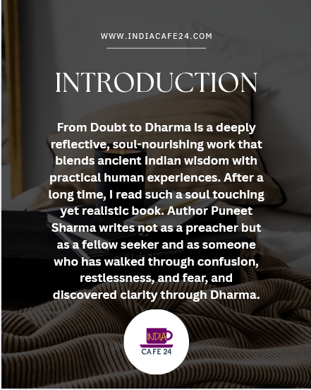 From Doubt to Dharma is a deeply reflective, soul-nourishing work that blends ancient Indian wisdom with practical human experiences. After a long time, I read such a soul touching yet realistic book. Author Puneet Sharma writes not as a preacher but as a fellow seeker and as someone who has walked through confusion, restlessness, and fear, and discovered clarity through Dharma.