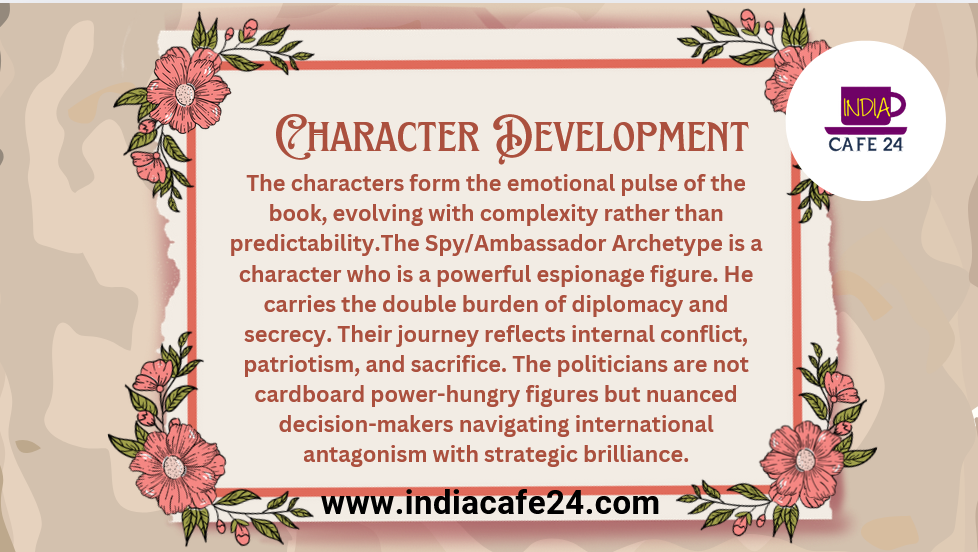 The characters form the emotional pulse of the book, evolving with complexity rather than predictability.The Spy/Ambassador Archetype is a character who is a powerful espionage figure. He carries the double burden of diplomacy and secrecy. Their journey reflects internal conflict, patriotism, and sacrifice. The politicians are not cardboard power-hungry figures but nuanced decision-makers navigating international antagonism with strategic brilliance. Colleagues, intelligence agents, media-connected insiders, and foreign diplomats enrich the narrative by embodying both allyship and threat, creating a chessboard-like character ecosystem. Character evolution is gradual and believable. Their choices reveal the emotional cost of secrecy, making readers empathize with their vulnerabilities even when actions appear ruthless.