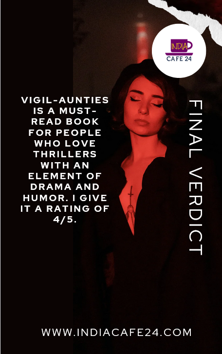 The plot of Vigil-Aunties combines elements of drama, thrill, action, and humor. The author has balanced all the elements beautifully to create a storyline that makes the readers bite their nails and gives them a good laugh at the same time. It has much suspense with several twists and turns to make it look like a crime thriller. At the same time, the plot is dramatic enough to make the readers emotional. So, it is a unique plot that is quite engaging and entertaining.