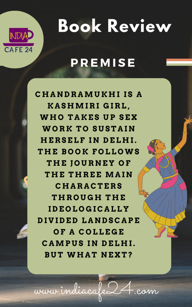 Chandramukhi is a Kashmiri girl, who takes up sex work to sustain herself in Delhi. The book follows the journey of the three main characters through the ideologically divided landscape of a college campus in Delhi. In the process, it highlights the self-destructive nature of the younger generation which is absolute in its beliefs and convinced of its righteousness.