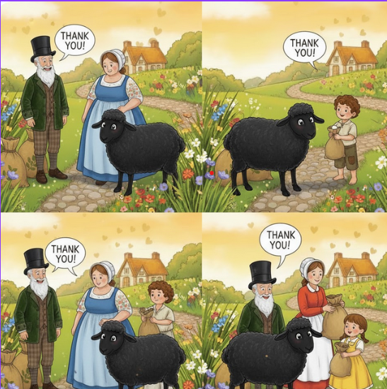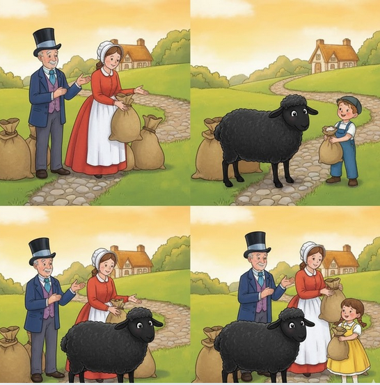 The black sheep gives wool to everyone. Yes, to the master, the dame, and the little boy or girl.