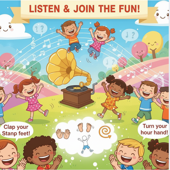 When we hear the music and the words, we know what to do next. It helps us to prepare for our actions. If we listen carefully, we can always join the fun by taking the right action at the right time.