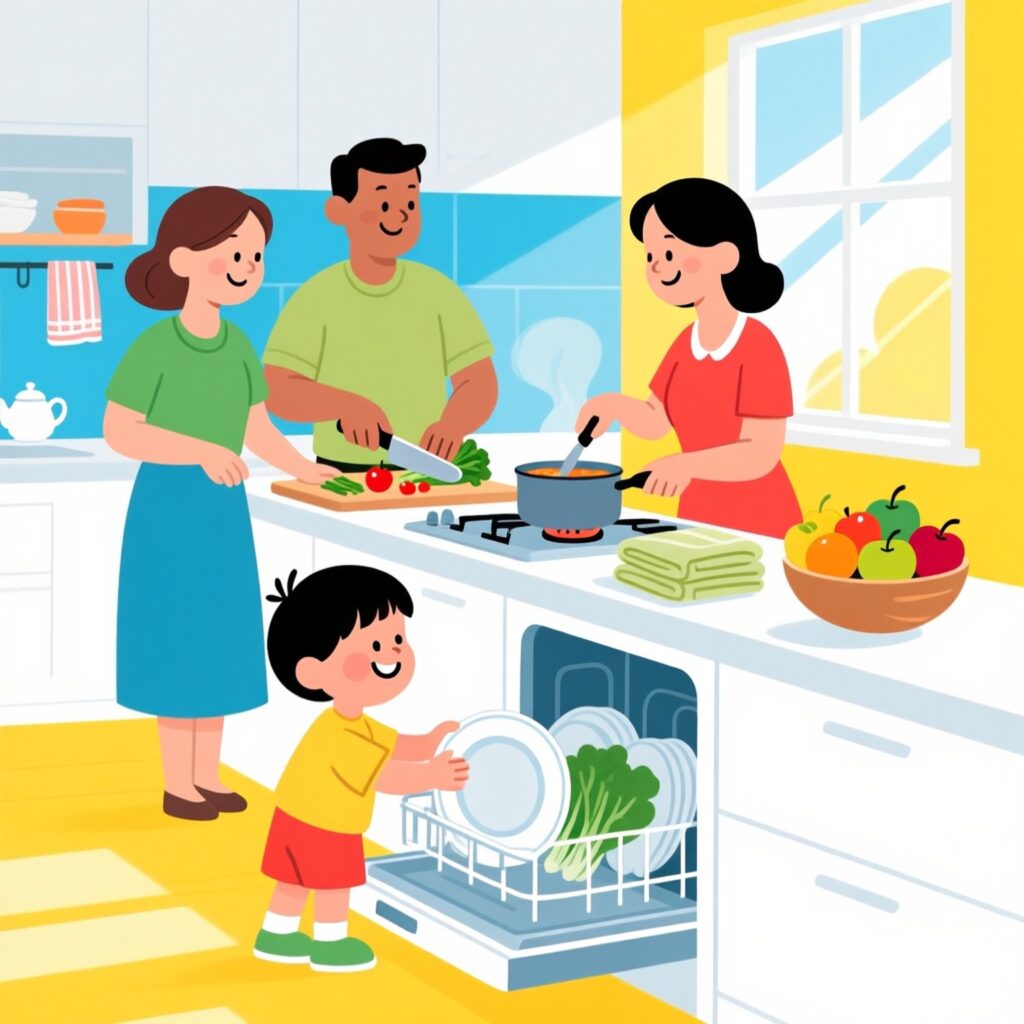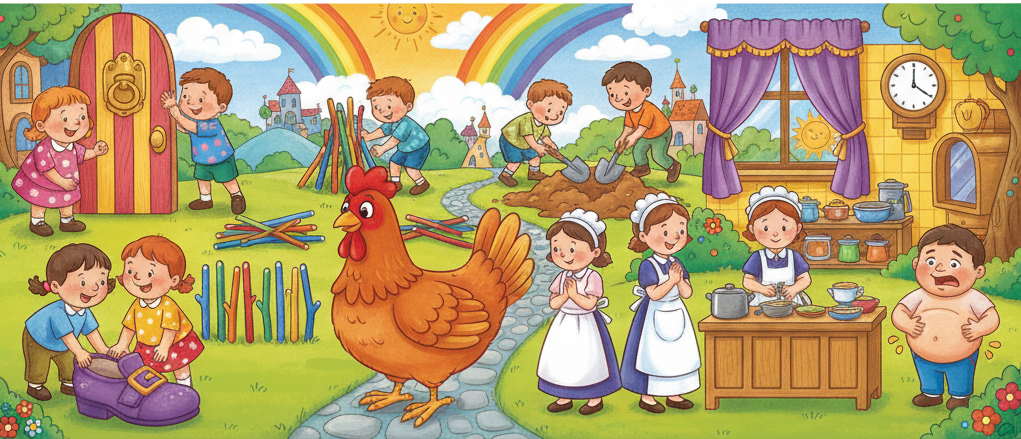 When the rhyme says ‘the maid’s in the kitchen,’ it tells us that everyone can help at home. We can help by putting our plates away, folding our clothes, or watering the plants. Helping makes us kind and caring. Specially for the Papa of the house, understand its not just the mom’s job to be in the kitchen. You can help her too and with time the child will observe and grow up as a caring and sensible human being.
