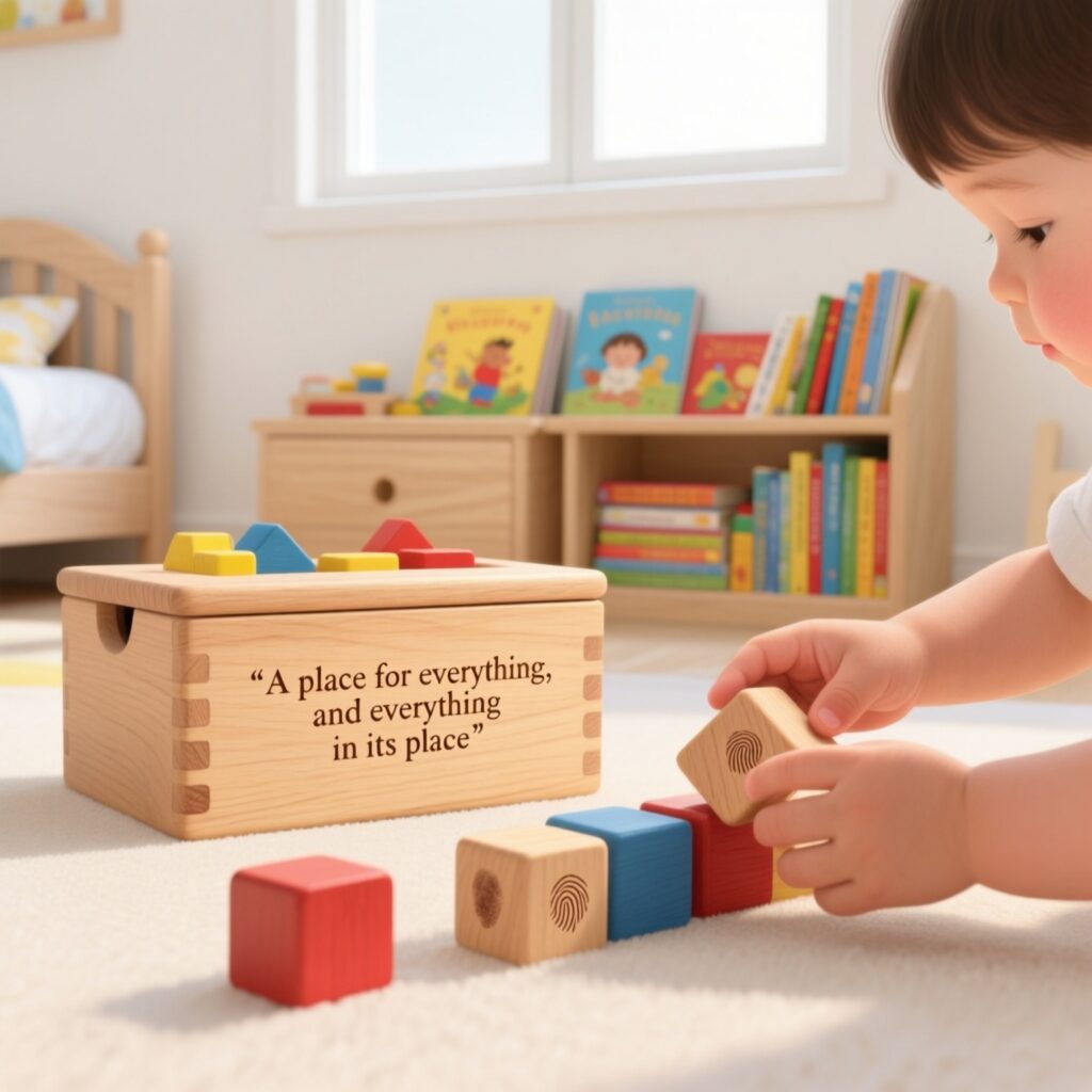 Pick up sticks and lay them straight teach us to keep our toys, books, and clothes in the right place. When our room is clean and neat, it looks beautiful, and we can find everything easily. For the parents too they should keep their personal things and the household things in the right place and in right way too. Remember your kids observe you and adapt your actions in their lives.