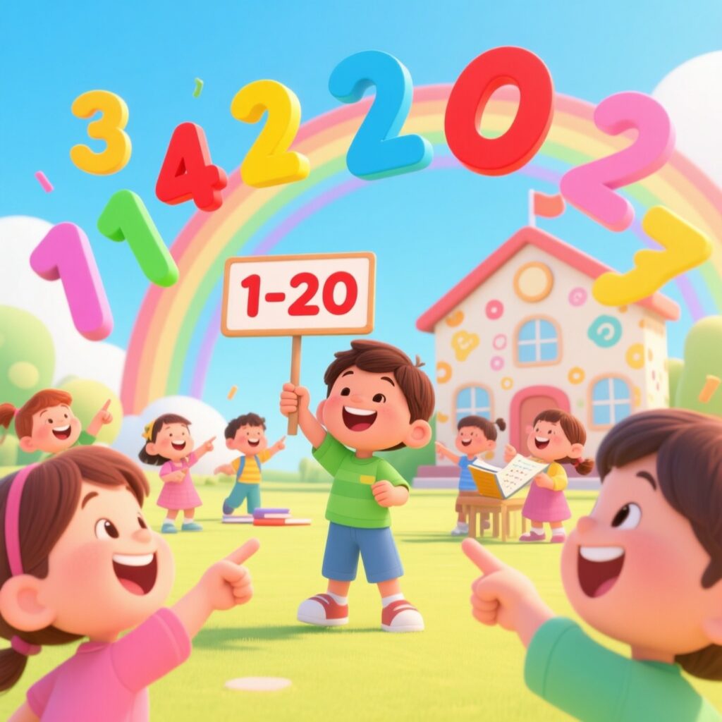 This rhyme helps us learn to count from one to twenty while singing and smiling! When we say the numbers again and again, our memory gets stronger. So, learning can be just as much fun as playing!. Whatever we learn in a playful manner helps us in memorizing fast.