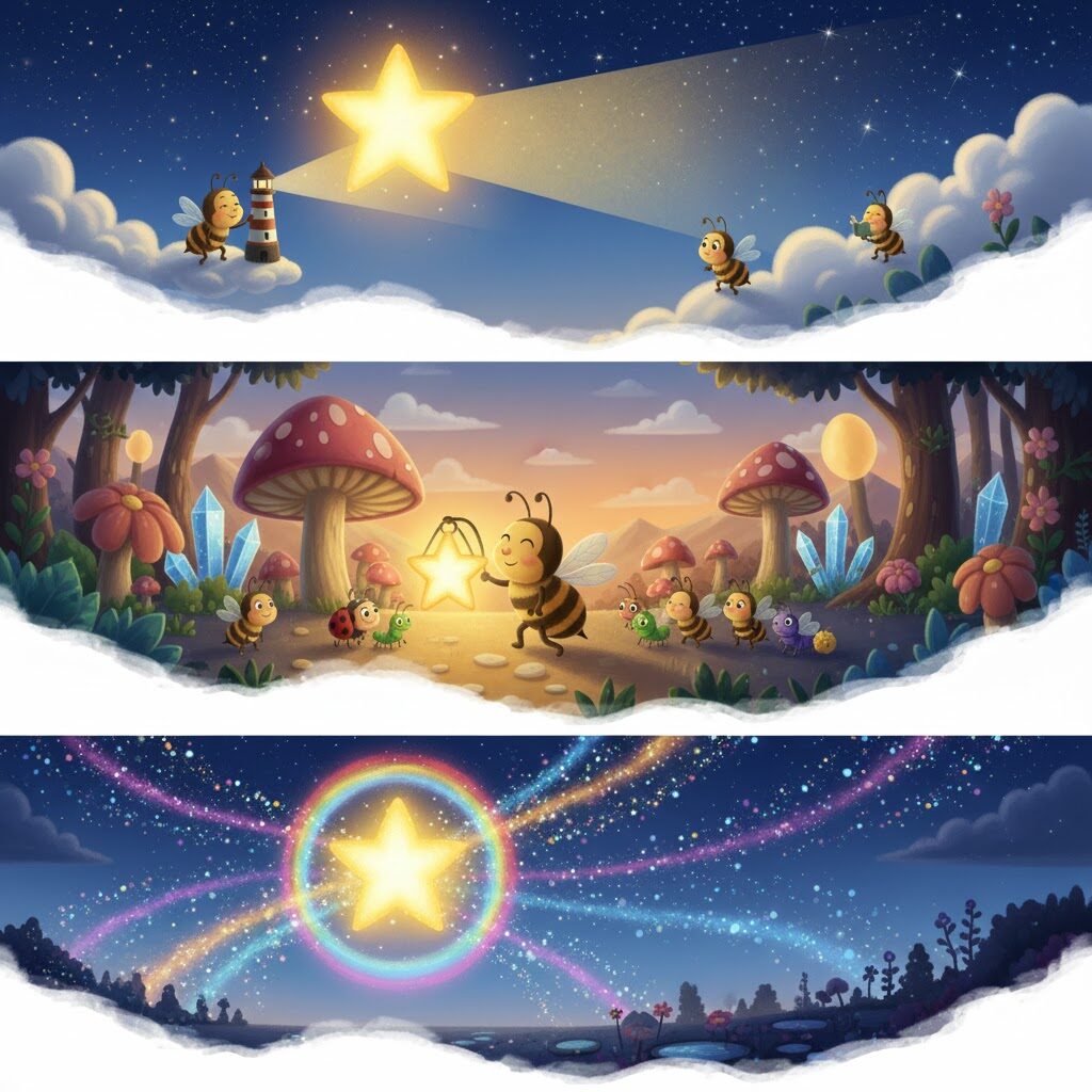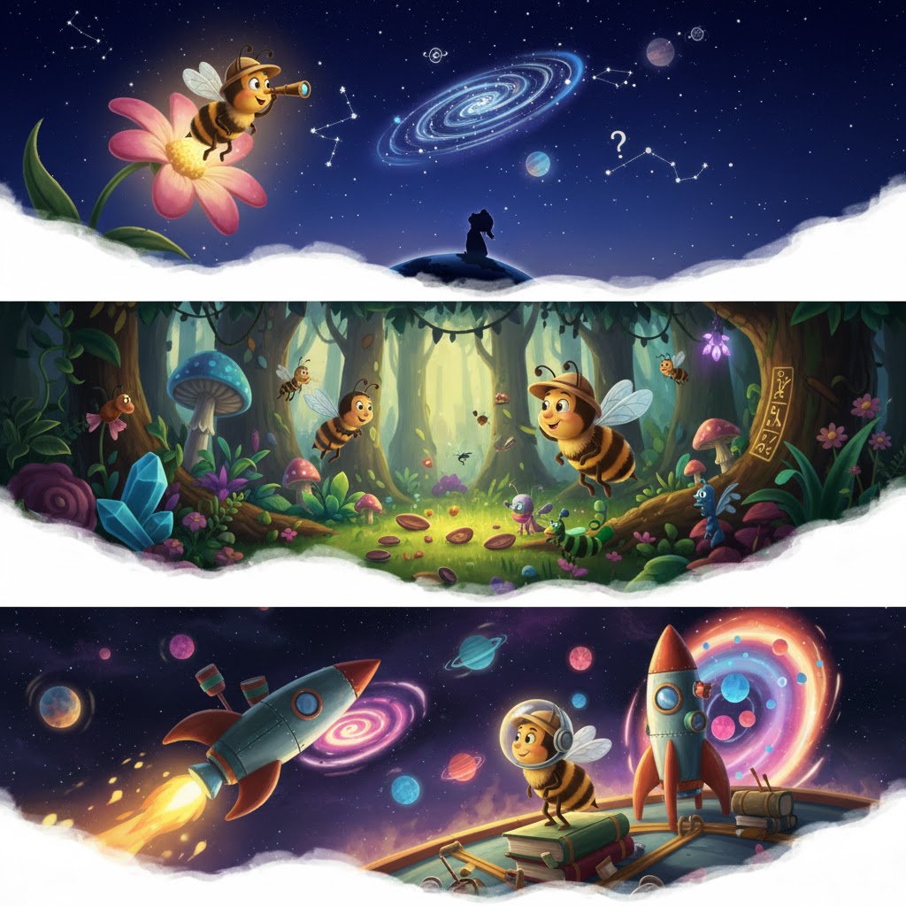 The line “How I wonder what you are” teaches children to ask questions, stay curious, and explore new things. Curiosity leads to learning and discovery. For the adults also I would like to say we all should be ready to explore new things life and the curious bee should also be there in our minds to. It will help to explore the Universe better.