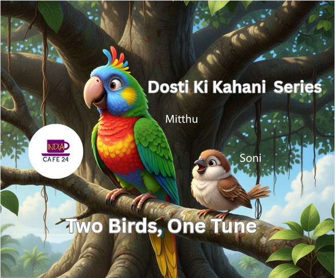 A colorful parrot, Mitthu, and a cute little sparrow, Soni, used to live on a big tree.