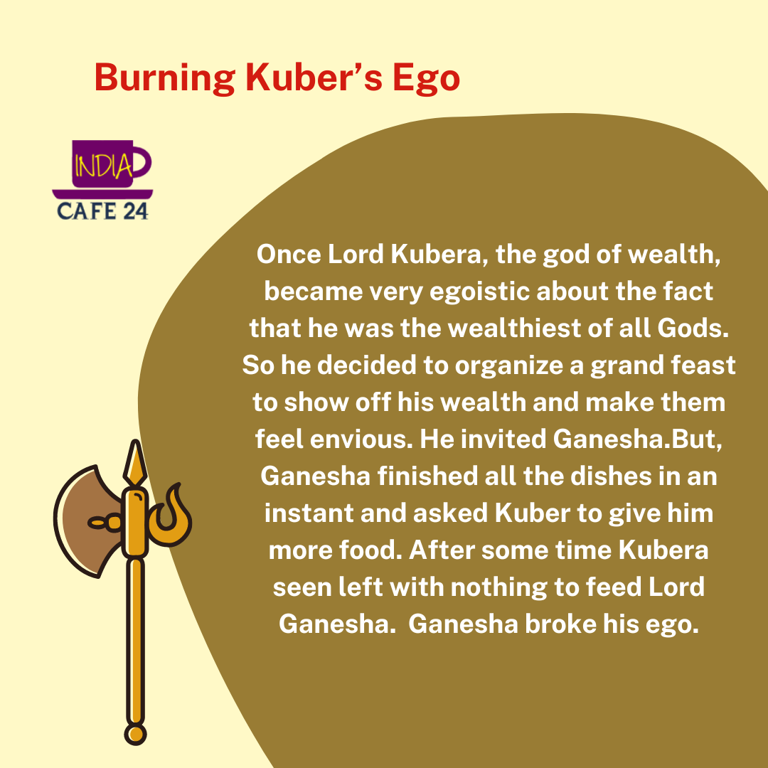 Lord Shiva gave him a bowl of kheer prepared by Goddess Parvati to feed to Lord Ganesha. When Lord Ganesha ate the kheer, his hunger got satiated, and Kuber’s ego got demolished.