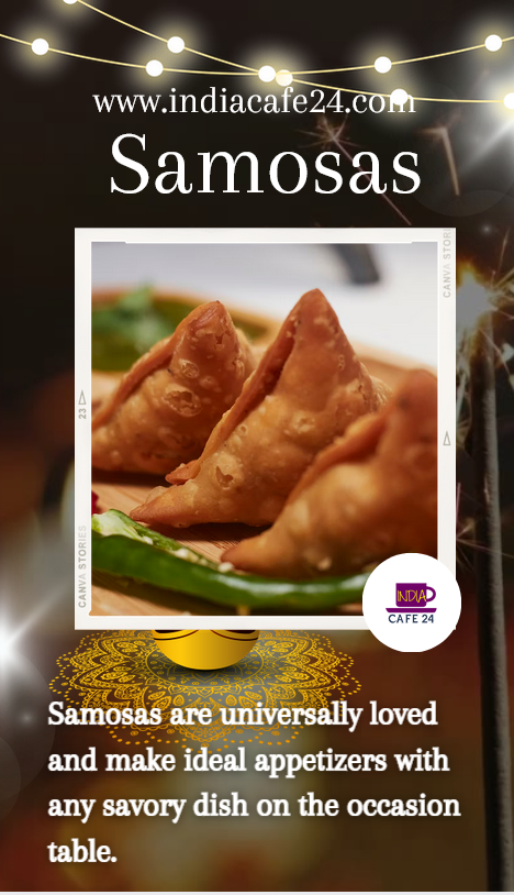 Samosas are universally loved and make ideal appetizers with any savory dish on the occasion table. They are triangular-shaped pastries stuffed with spiced potatoes, peas, and sometime meat and then fried until perfectly golden. These are just delicacies. They provide pleasant snaps but set you up for an appetizer.